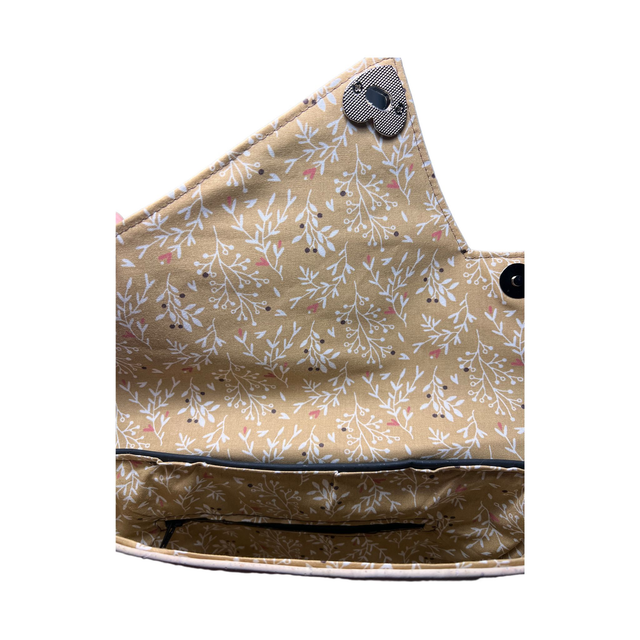Il se ferme à l'aide d'un joli fermoir " tourniquet" en forme de coeur et deux boutons aimants sous le rabat